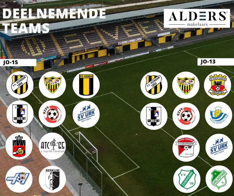 Veendam 1894 organiseert op zaterdag 15 juni a.s. het prestigieuze Alders Toernooi. Het betreft een kwalitatief hoogwaardig jeugdtoernooi voor JO13 en JO15 met een gevarieerd deelnemersveld. Vele vooraanstaande clubs zullen hun niet geringe kunsten vertonen in de Parkstad en met de deelname van een team uit Polen krijgt het toernooi zelfs een internationaal karakter.