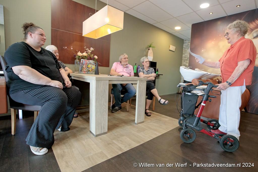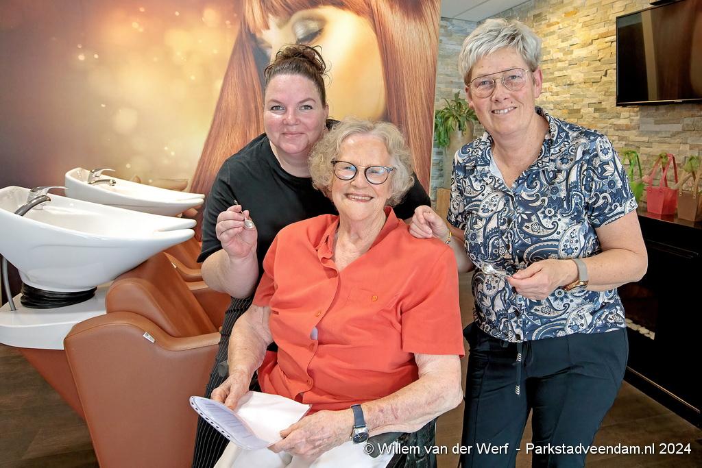 De 87-jarige mevr. Hetty Antema-Ligtenberg uit Veendam is al 25 jaar trouwe klant bij Kapsalon Fenneke in Wildervank en dat moest volgens haar maar eens gevierd worden “Ik loopt er al zolang de kapsalon bestaat” verteld een zelfverzekerde mevr. Antema. “Ik ga daar vrijdagmiddag een feestje bouwen”.