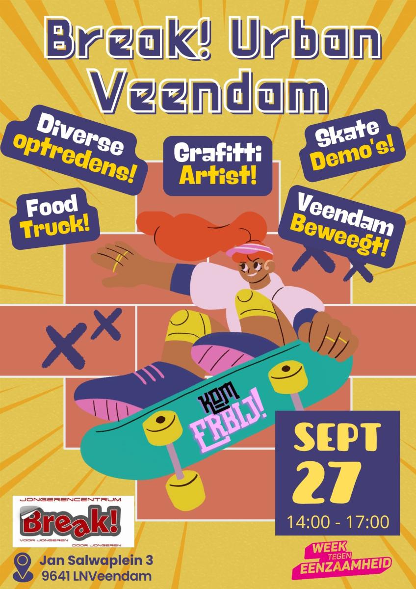 Jongerencentrum Break! organiseert op vrijdag 27 september Urban Veendam in het kader van de Week tegen eenzaamheid.