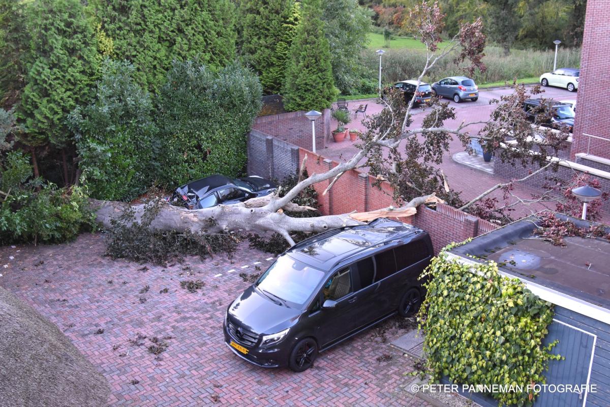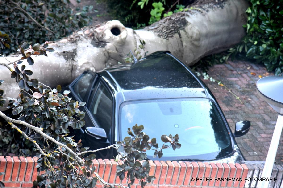Een eeuwenoude boom heeft woensdagmiddag in de Julianalaan in Veendam het loodje gelegd. Tijdens een fikse hoosbui wat gepaard ging met een flinke stormachtige wind, viel de boom in een tuin van een naastgelegen woning waar op dat moment een tweetal geparkeerde auto's stonden.