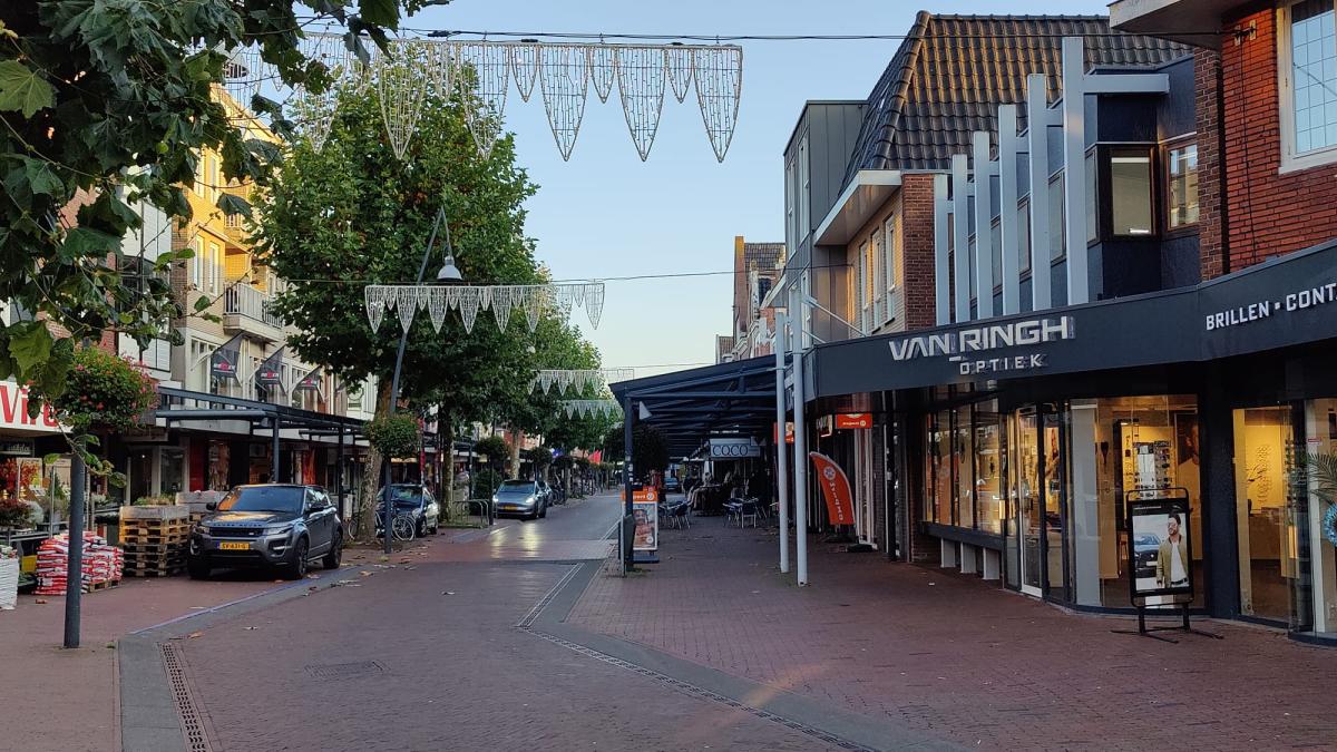 Ook in het centrum van Veendam is donderdagmiddag een begin gemaakt om de sfeerverlichting op te hangen. Zodat binnenkort de sfeerverlichting weer zal stralen als ooit te voren