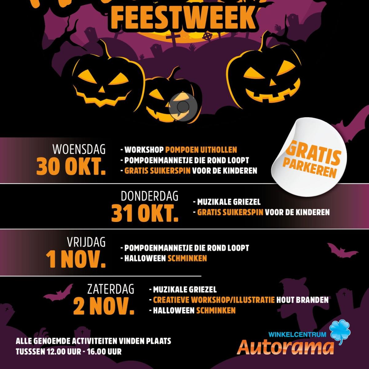 De feestweek is een initiatief van de winkeliers van Autorama. Tijdens de feestweek kunnen de kinderen kosteloos meedoen aan workshops, evenals dat ze zich kosteloos kunnen laten schminken. Op het centrale plein in Autorama zal de schminkster weer de mooiste creaties schminken, uiteraard geheel in het thema Halloween! Ook zullen er op twee middagen gratis suikerspinnen te verkrijgen zijn voor de kinderen.