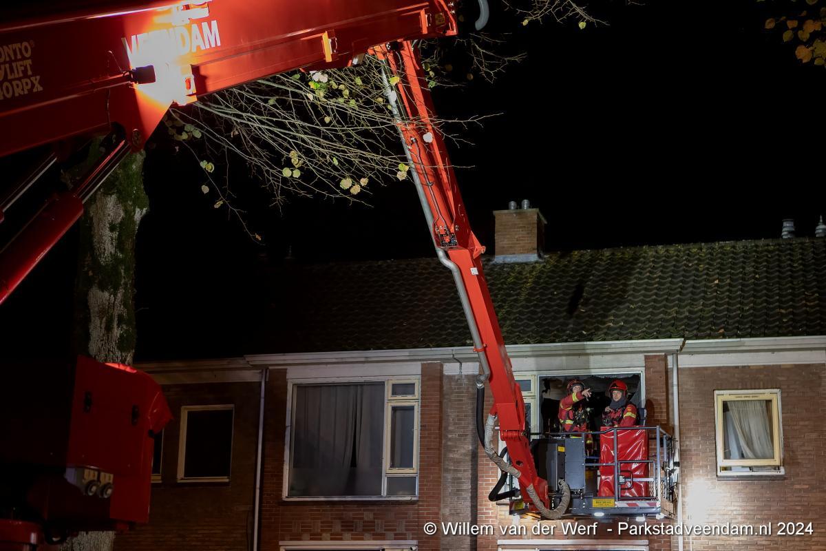 We voeren momenteel een binnenaanval uit. Alle bewoners van de woning en omliggende portiekwoningen hebben hun woning op tijd kunnen verlaten door het afgaan van een rookmelder.