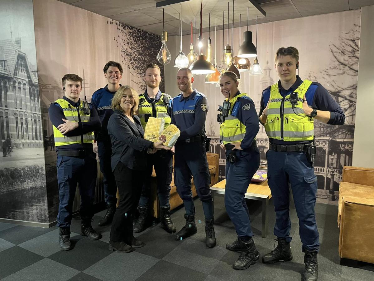 Om ze te bedanken voor hun inzet heeft burgemeester Annelies Pleyte de medewerkers van Politie Basisteam Ommelanden Midden, de Brandweer Veendam, de boa’s en de buitendienst vandaag verrast met oliebollen.