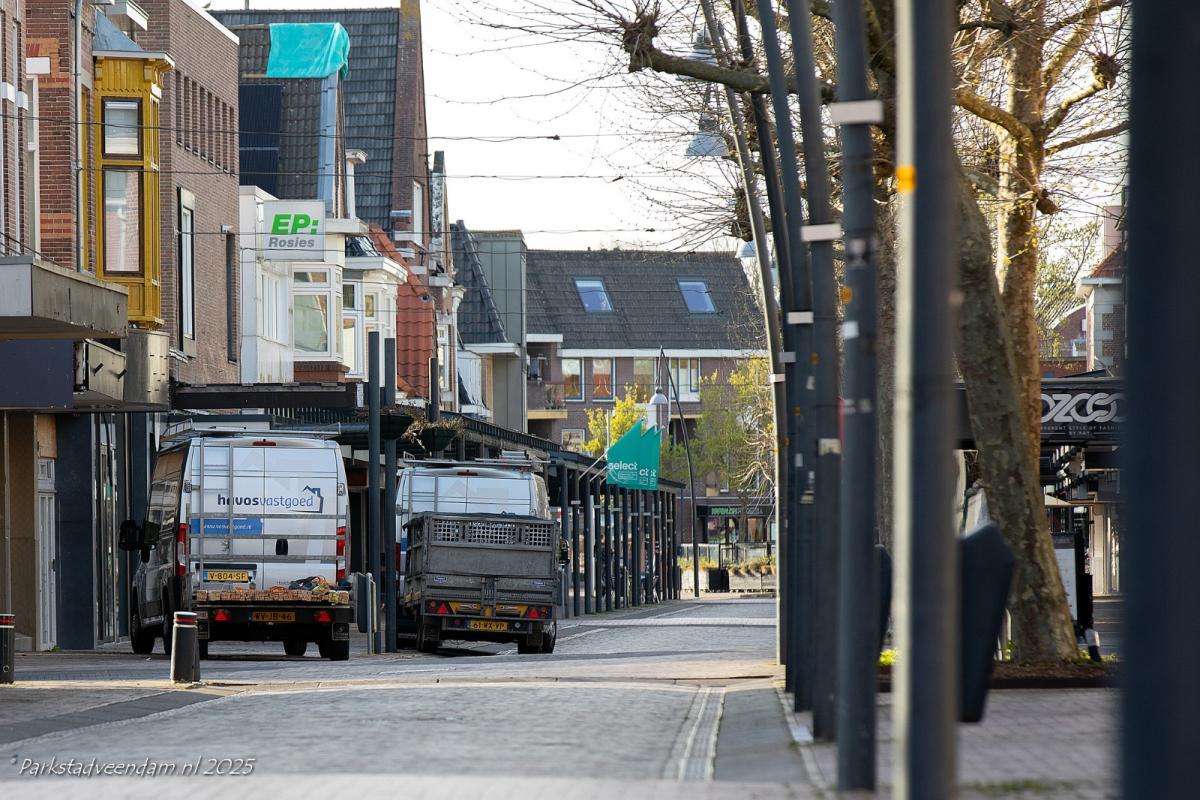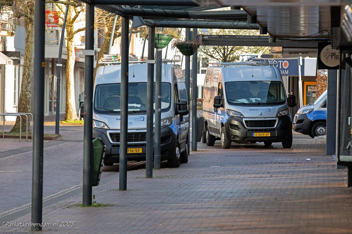Maandagmiddag is het Hensenpand in de Kerkstraat te Veendam leeggehaald. Aanwezige bouwmaterialen enz. zijn ingeladen in de af en aanrijdende bedrijfsauto`s van Havos.