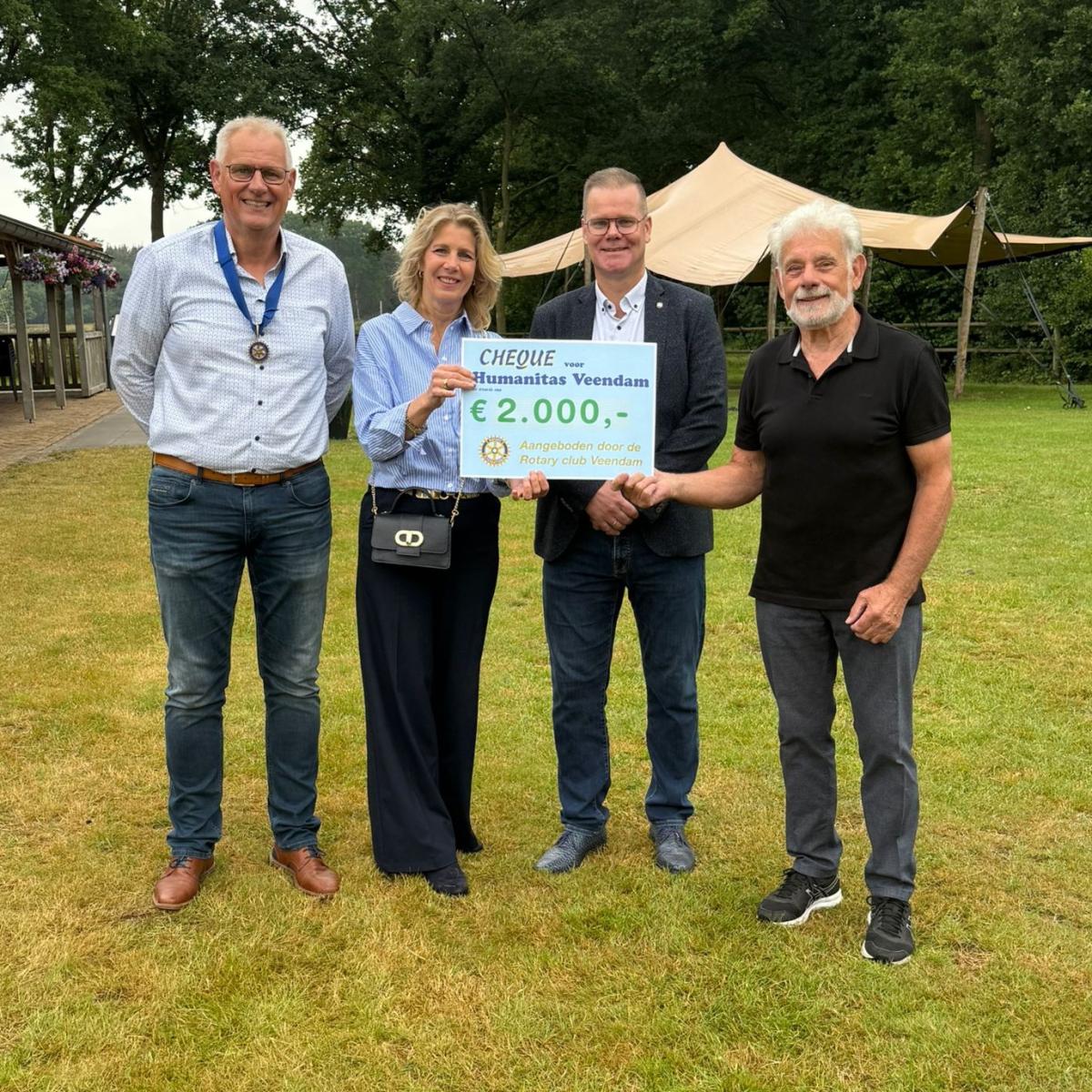 Rotaryclub Veendam maakt een prachtig gebaar door Humanitas afdeling Veendam & Pekela een genereuze bijdrage te schenken van € 10.000. Nadat in december 2024 een bijdrage is toegezegd van € 8.000 heeft de Rotaryclub Veendam besloten nog een extra bijdrage te doen van € 2.000 in juni. Deze extra cheque werd dinsdag 24 juni in The Ranch Veendam overhandigd aan Humanitas. Met deze extra bijdrage kunnen de kindervakantieweken in de zomer van 2025 en nu ook in 2026 worden georganiseerd. Met de 2-jarige ondersteuning kunnen kinderen op vakantie die anders geen (betaalbare) vakantie kunnen beleven. De financiering is bedoeld om financiële barrières weg te nemen voor gezinnen met minder draagkracht. Dankzij de bijdrage van Rotary kunnen kinderen van 6 – 12 jaar uitgerust en opgeladen terugkeren na een gezellige en leerzame week vol zon, natuur en vriendschap. Elke dag staat in het teken van samen werken, leren en plezier maken, zonder dat het draait om prestaties. Vrijheid en ontspanning staan voorop.