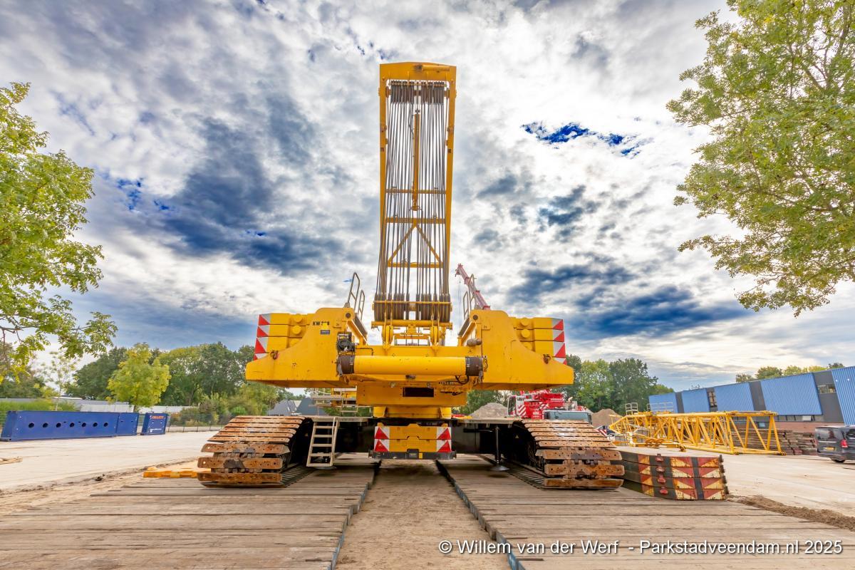 In Veendam is begonnen met de opbouw van een CC3800-kraan van Adrichem. Deze krachtpatser wordt ingezet om de eerste van zes mega-transformatoren van boord te hijsen en op een speciaal transport te plaatsen.