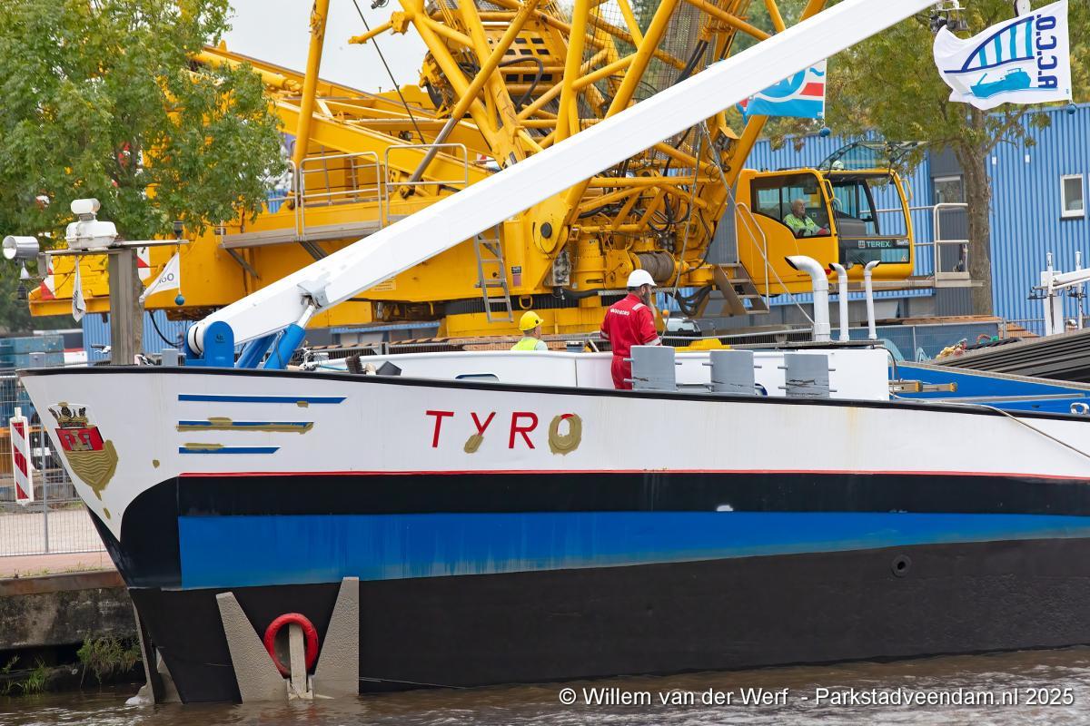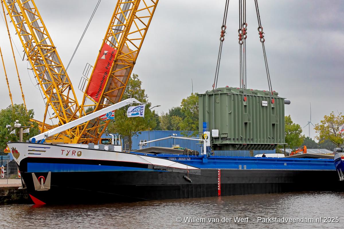 De TYRO, met een laadvermogen van 1.106 ton en een lengte van bijna 70 meter, bracht de zware lading veilig naar Veendam. Na aankomst zijn de transformatoren tijdelijk opgeslagen op het haventerrein.