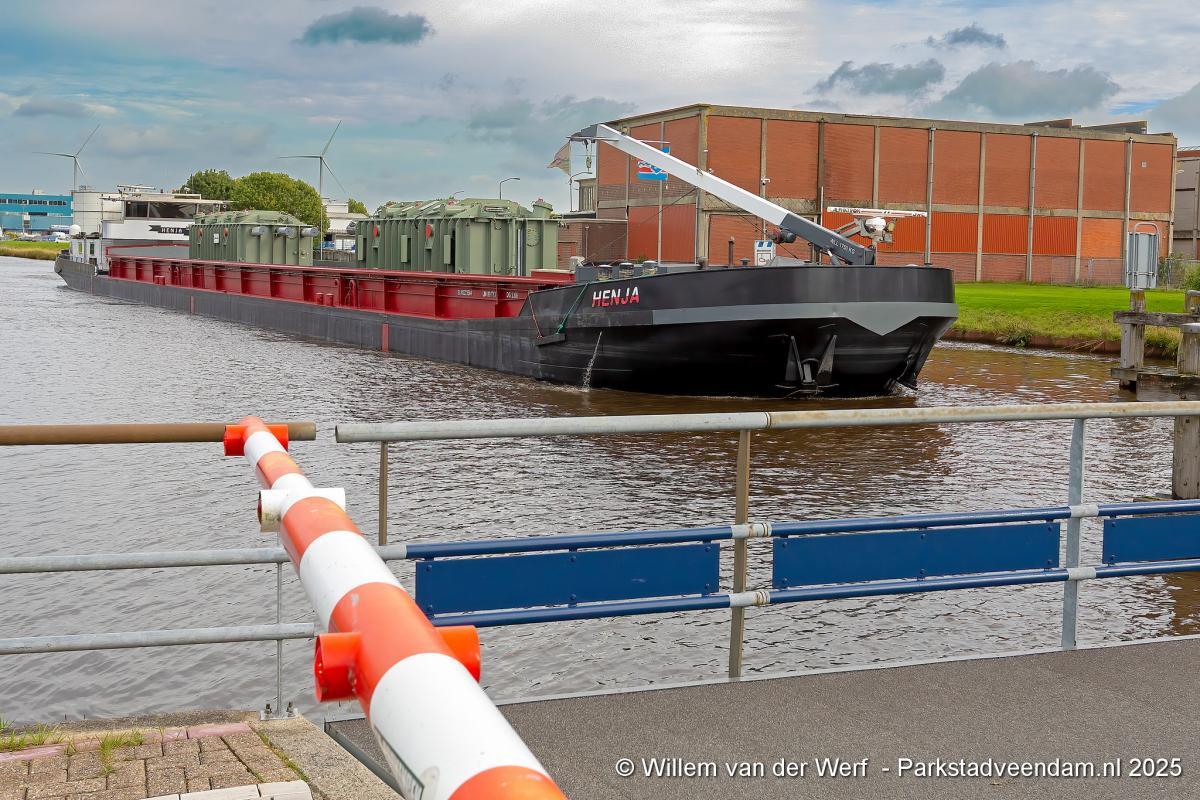Het schip HENJA, dat oorspronkelijk woensdag in de haven werd verwacht, is een dag eerder aangekomen. De lossing staat gepland voor morgen. Aan boord bevinden zich nog eens twee hoogspanningstransformatoren.