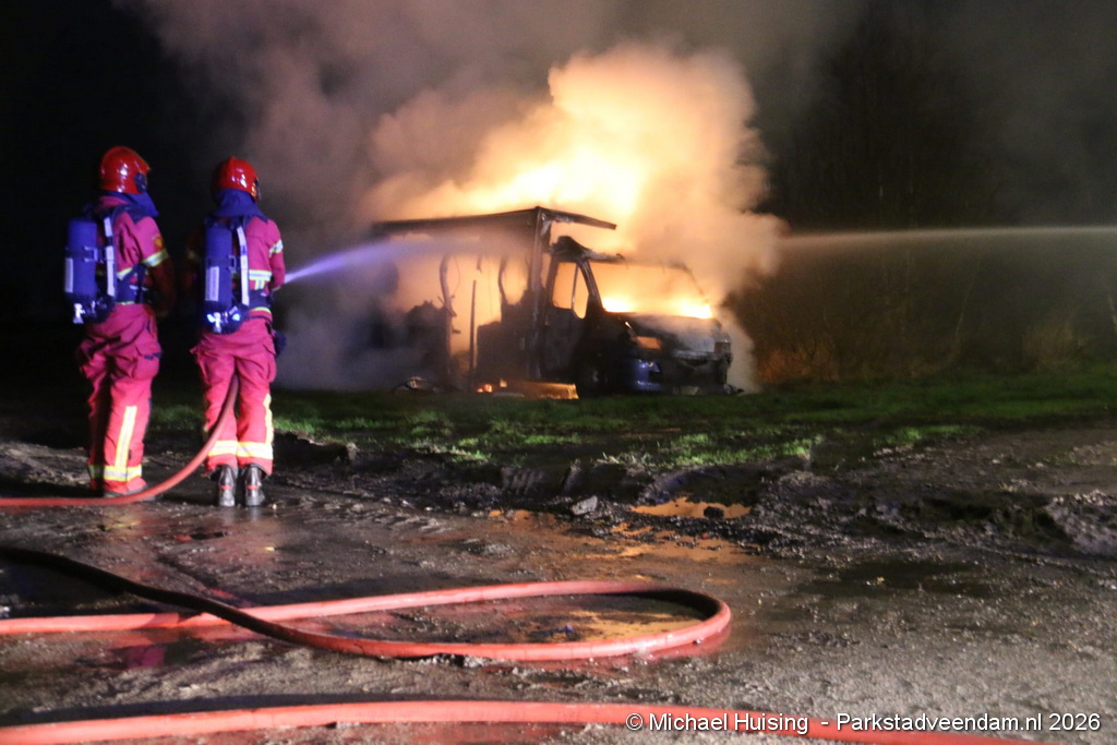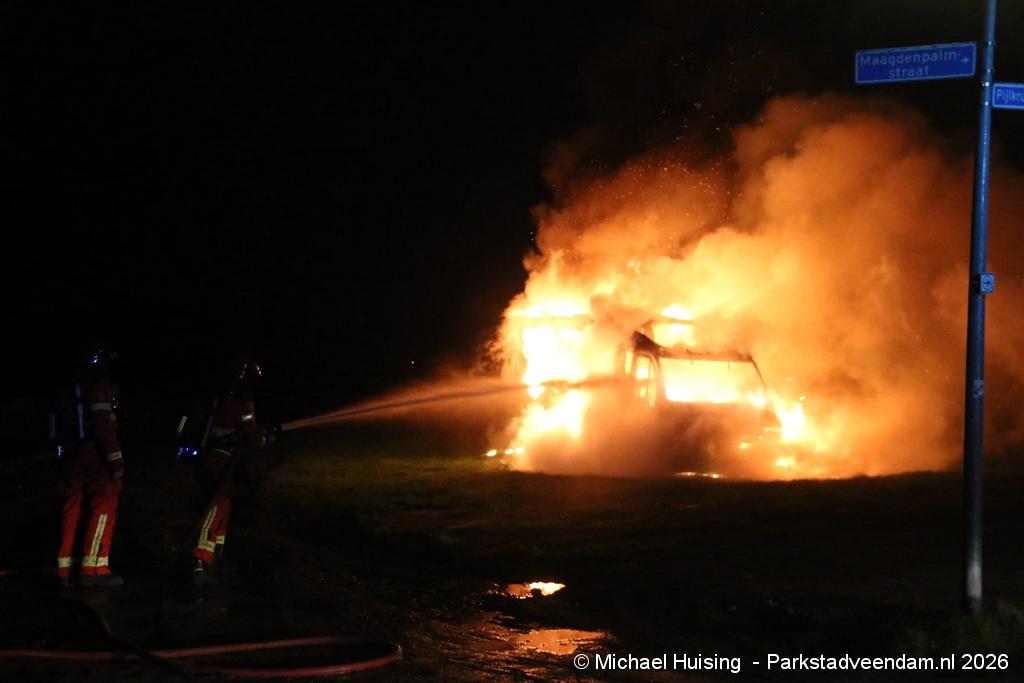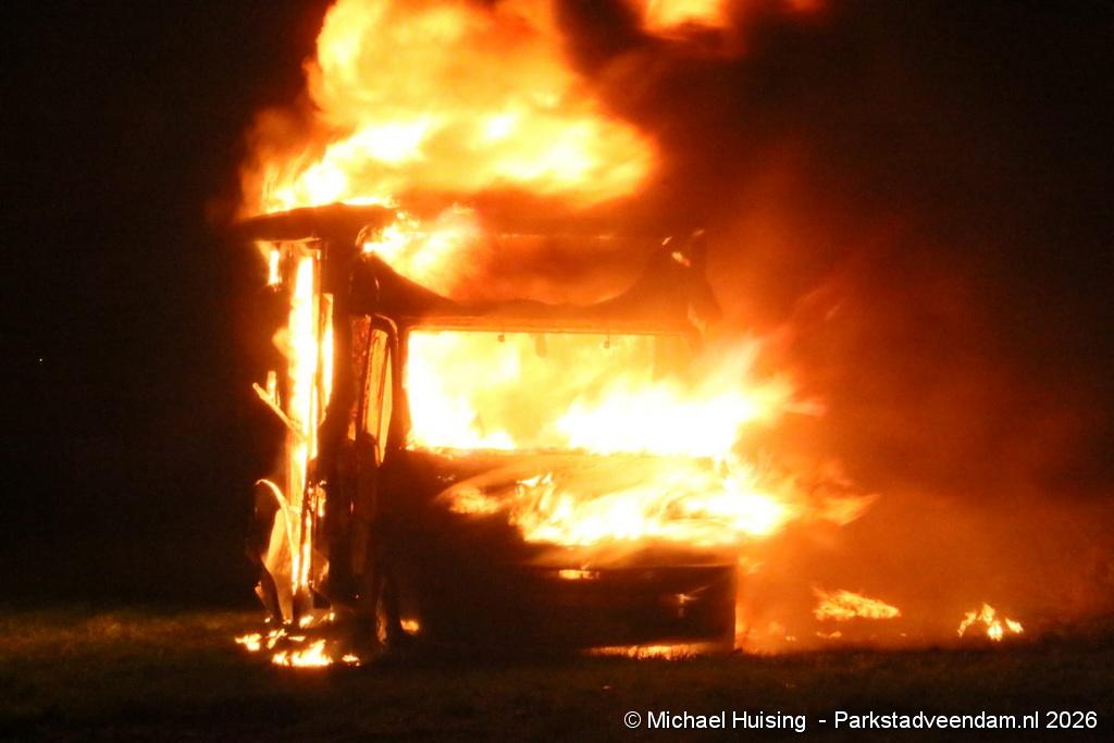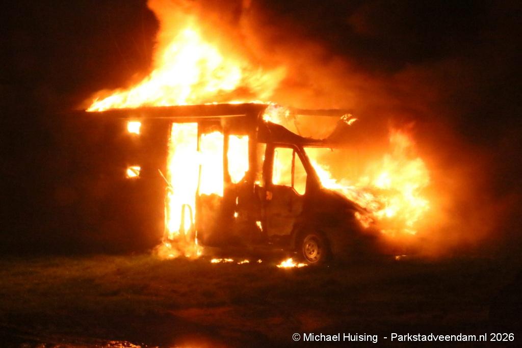 Aan de Pijlkruidstraat in Wildervank is donderdagavond een camper volledig in vlammen opgegaan. Het voertuig stond geparkeerd op een stuk braakliggend terrein, tegenover een parkeerplaats. De brandweer en politie rukten met spoed uit na de melding.