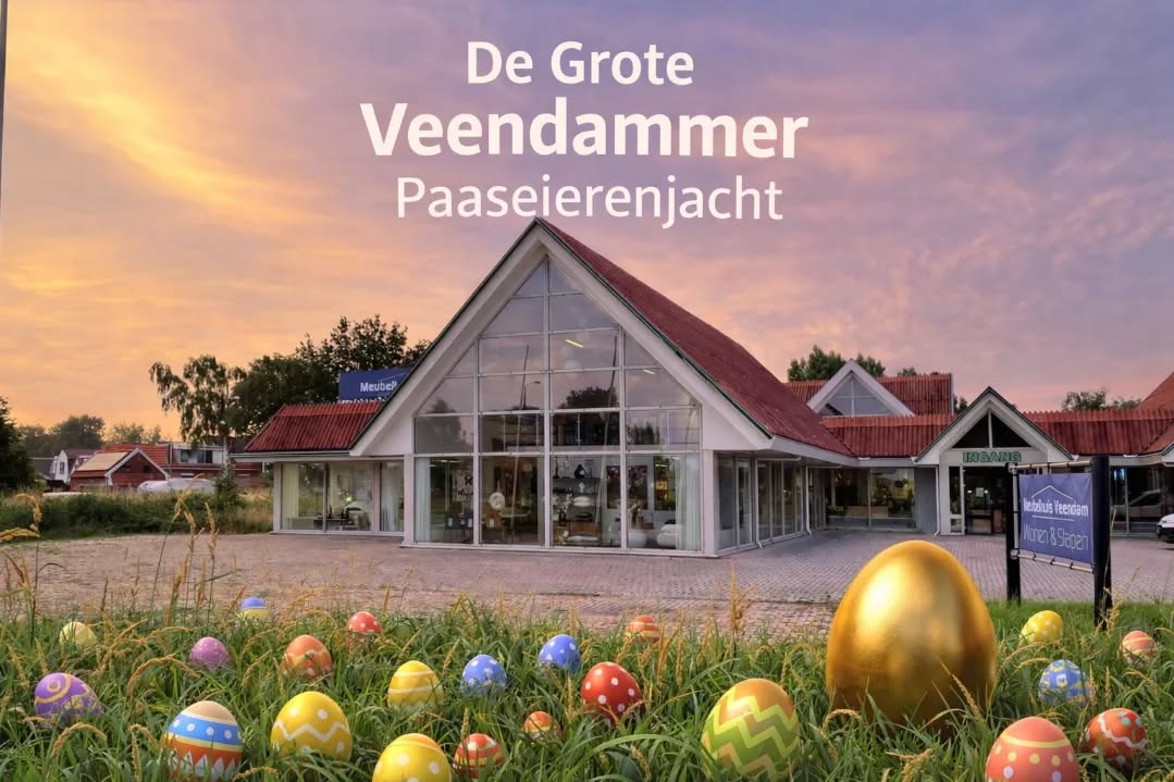Dit jaar wordt Pasen in Veendam nét een beetje spannender. Meubelhuis Veendam lanceert namelijk De Grote Veendammer Paaseierenjacht, een vrolijke actie waarbij in de periode van 31 maart tot en met 4 april dagelijks paaseieren worden verstopt in en rondom Veendam.