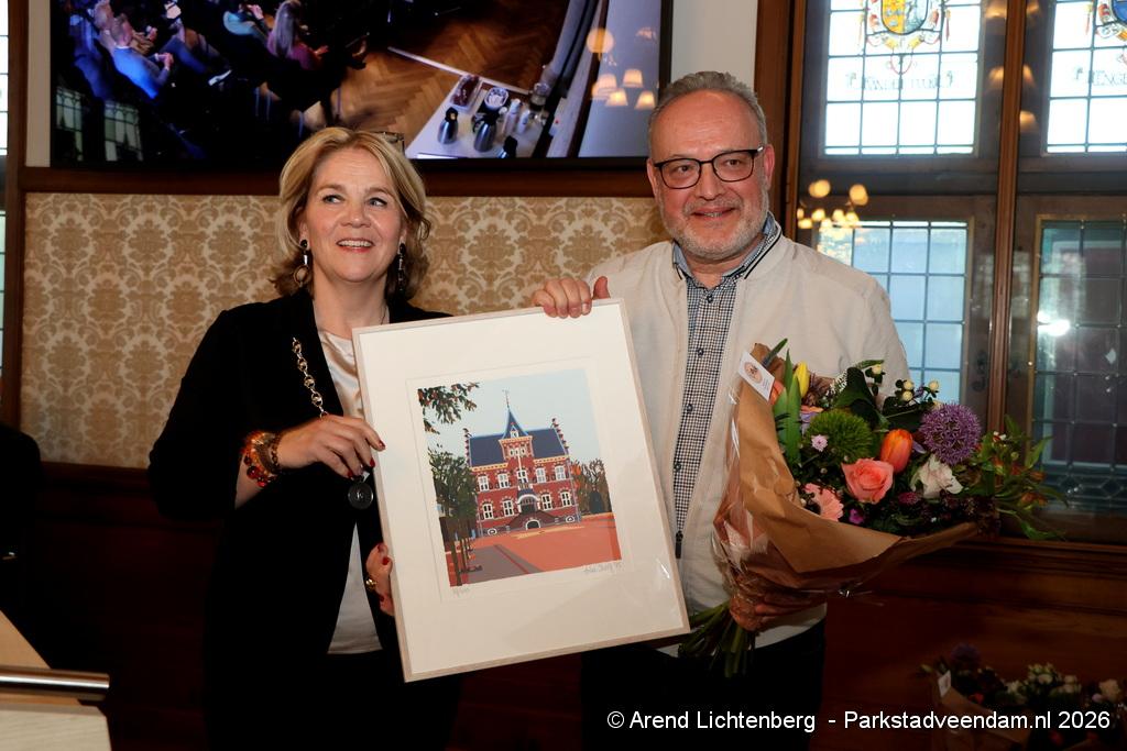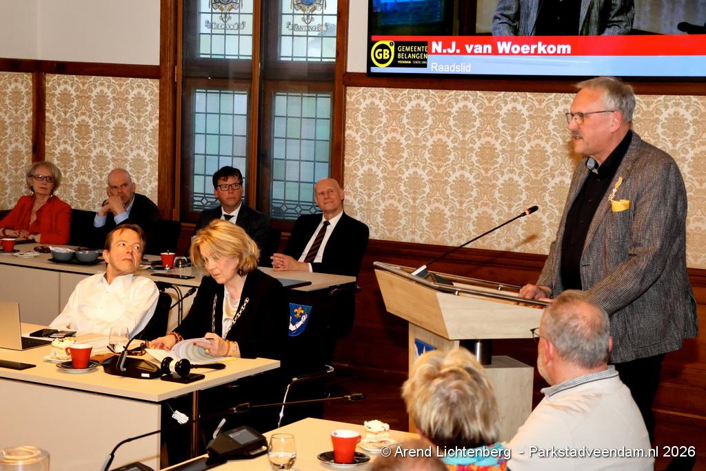 Tijdens de Vergadering Gemeenteraad: Afscheid Oude Raad sprak burgemeester Annelies Pleyte de vertrekkende raadsleden toe. In deze bijeenkomst werd afscheid genomen van Grieto Visser (GB), Nick van Woerkom (GB), Rob Haije (PvdA), Tashin Mete (PvdA), Harry Schoonewille (SP) en Ben Kenters (VoorOns Veendam).