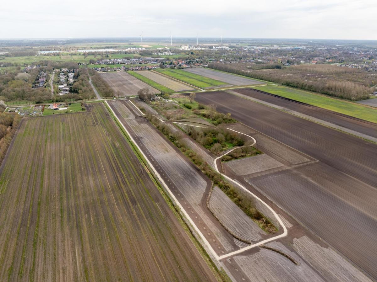 Luchtfoto van het nieuwe bos aan de Bovenweg in Muntendam.