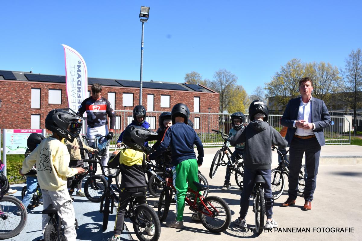 Op het Leer en Sportpark De Langeleegte zijn vandaag nieuwe BMX‑fietsen, skateboards en racefietsen officieel in gebruik genomen. Wethouder Henk Jan Schmaal verrichtte samen met kinderen en jongeren de openingshandeling.