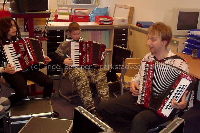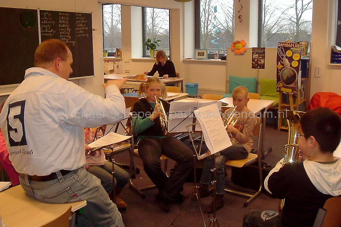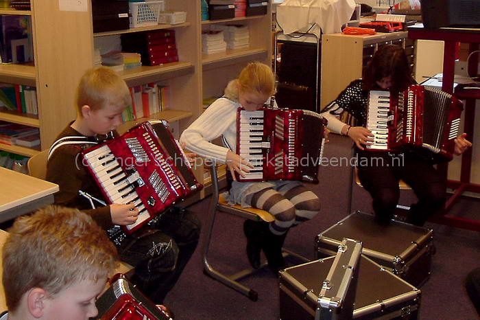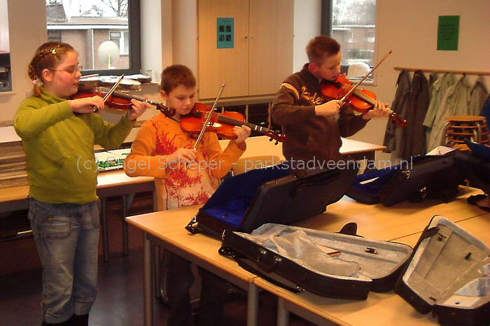 Ook kunnen de leerlingen kiezen voor toneel spelen. Na een aantal weken wordt er gewisseld. De kinderen met een instrument krijgen een ander instrument.