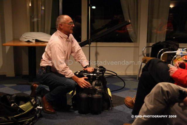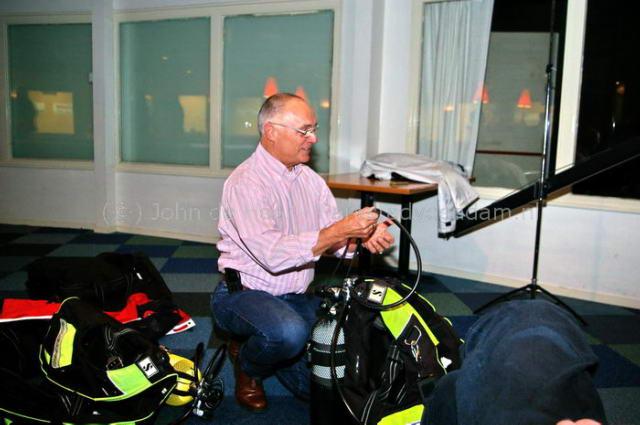 Het was natuurlijk even wennen voor de computerfreaks van Parkstadveendam. Gewoontegetrouw zitten ze achter de computer, vliegen achter een brand aan, zijn bij een sportevenement of een actualiteit aanwezig, wat de aandacht verdient. Maar zich in het diepe te laten gooien, dat was nieuw voor de crew van directeur Willem van de Werf. En met gooien bedoel ik, de flessen perslucht, dat als een moker op hun rug hingen.