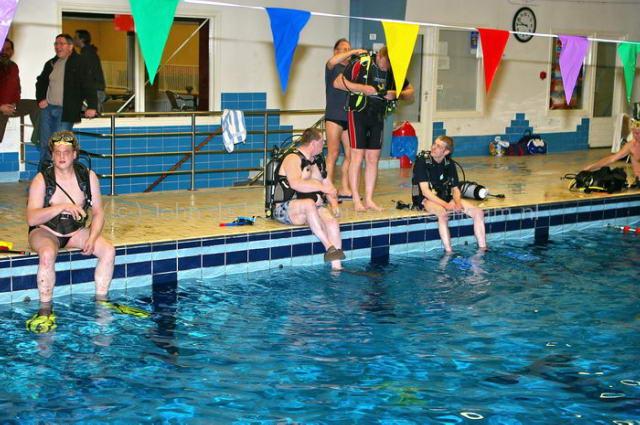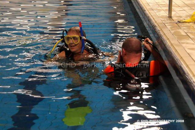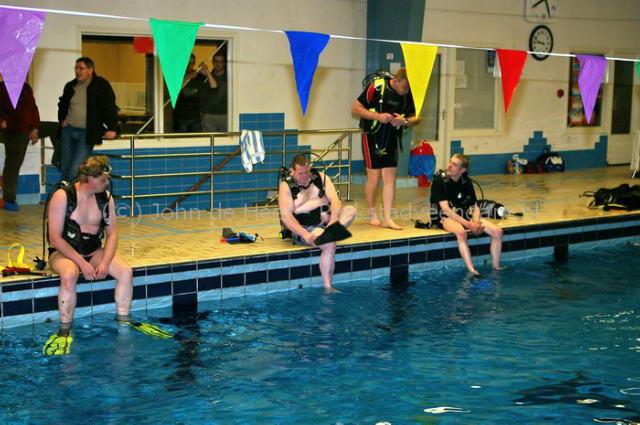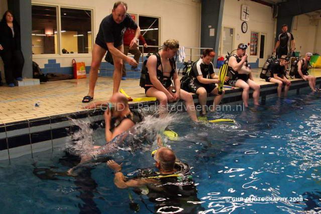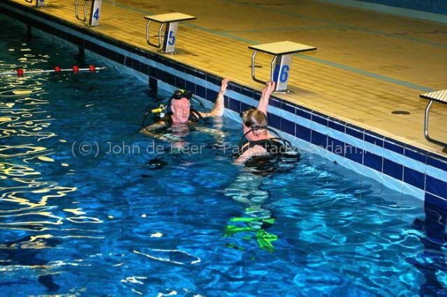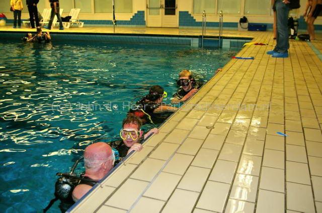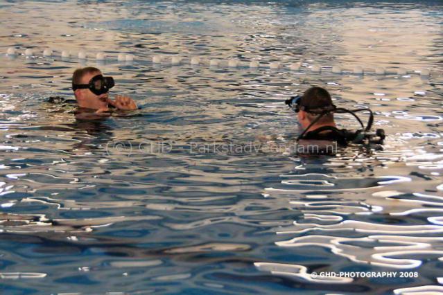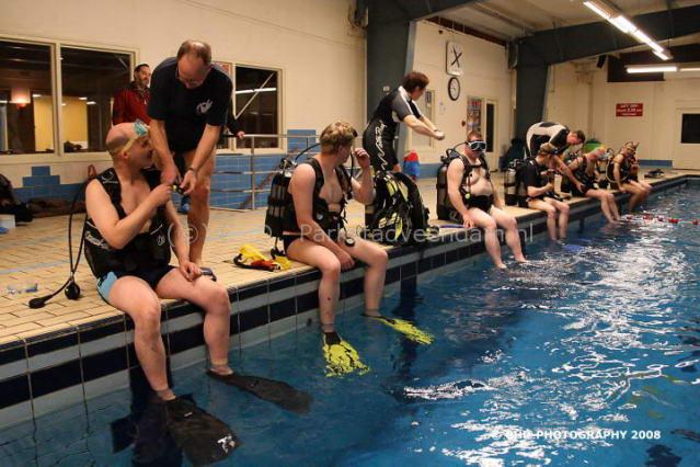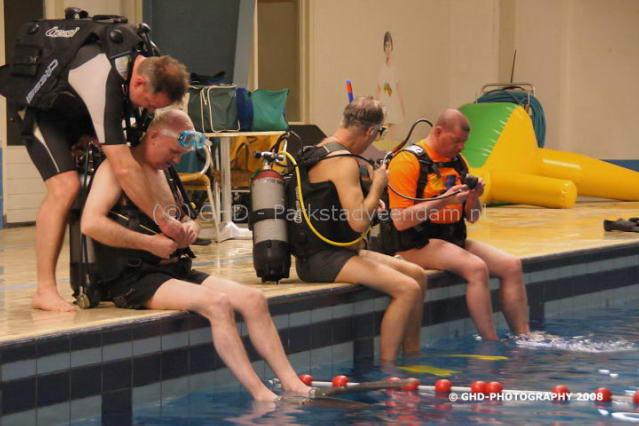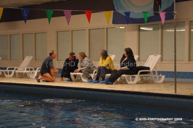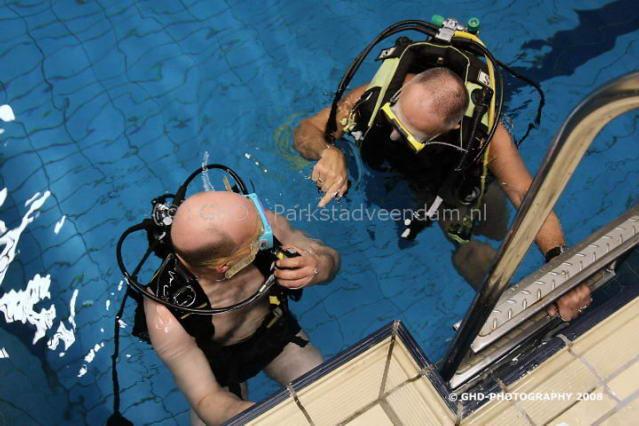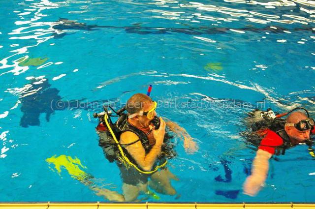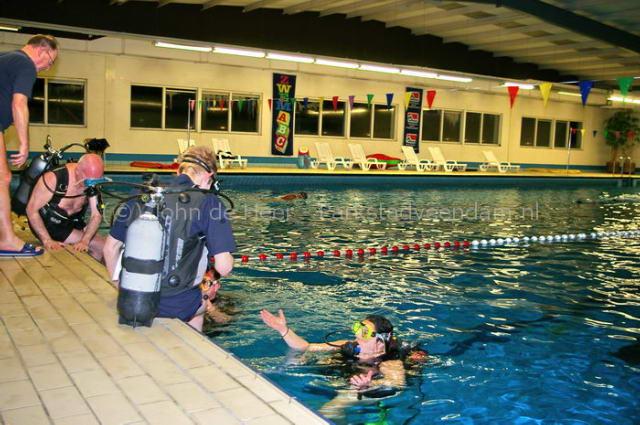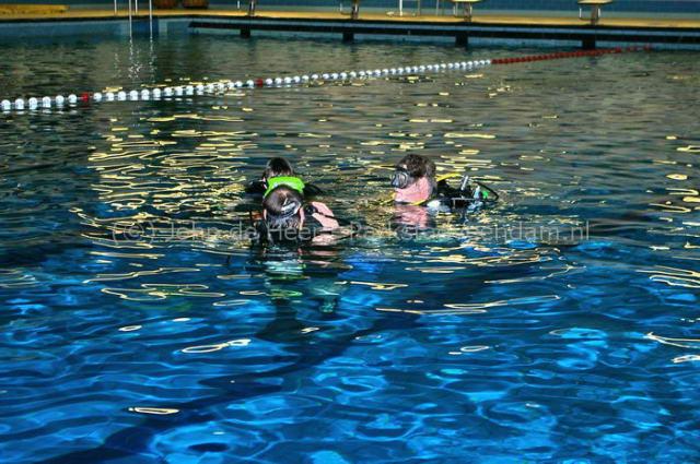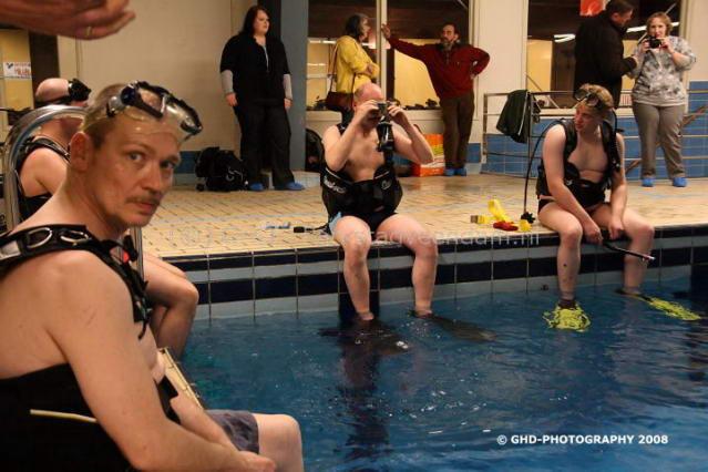 De instructeurs en instructrices van VG Diving waren voor hun vak geschapen en met hun gedegen vakkennis legden zij de deelnemers/sters, de eerste beginselen van het duiken uit. Daarna gingen de waterratten kopje onder en op een gegeven moment zag je dat er niemand meer boven water dreef. Het was een adembenemend schouwspel, maar ineens waren de kopjes van de internetters weer boven het water.