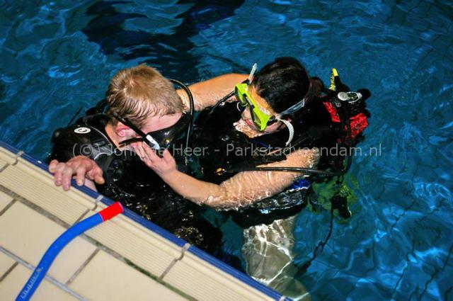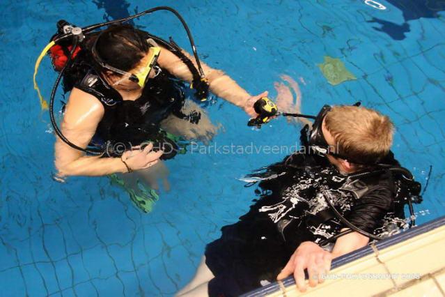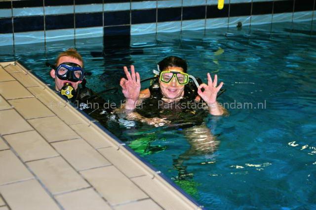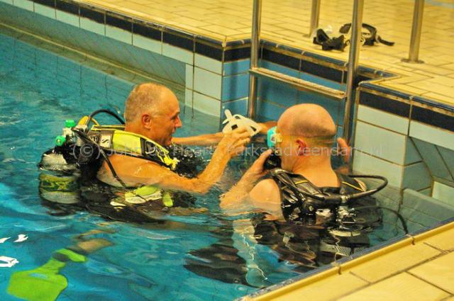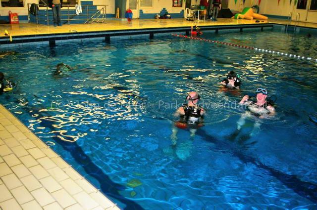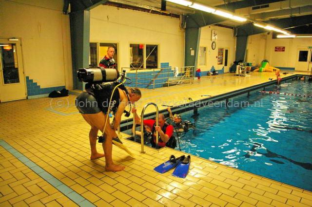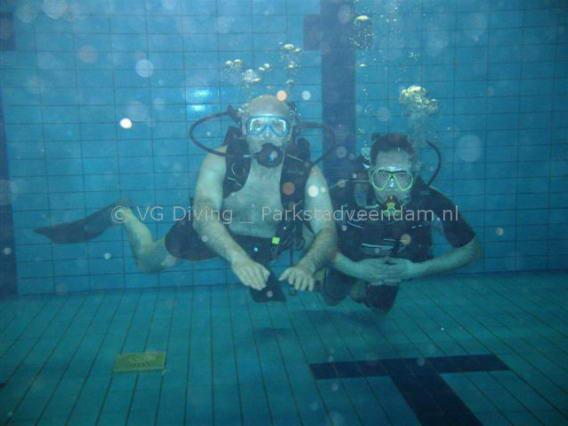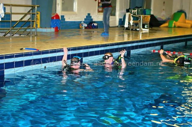 ZUIDBROEK - De medewerkers/sters van de internetsite Parkstadveendam mochten afgelopen week een kijkje nemen in de keuken van duikschool V.G. Diving (VG: staat voor de oprichters van de duikclub, Victor Meerlo en Grieto Visser). De duikschool V.G. Diving mag zich gelukkig prijzen met heel veel fanatieke duikers en snorkelaars. De club is met 180 leden de grootste in Noord-Nederland. En ze houden domicilie in Muntendam, Zuidbroek en in Oude Pekela. De plaats waar de duikers zich in het diepe lieten plonsen was het zwembad van hotel van der Valk in Zuidbroek.