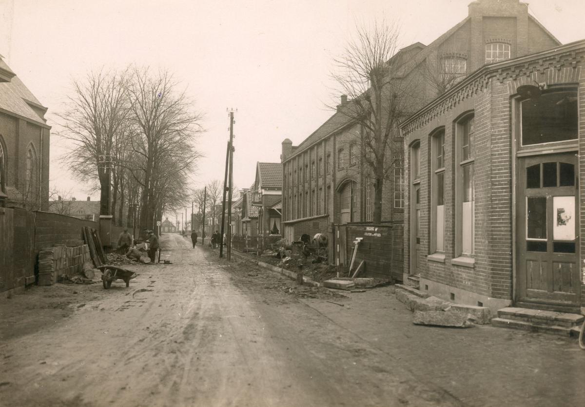 FOTO: Begin 20e eeuw: werkzaamheden in de Schoolstraat. Een van de 200 beelden uit het nieuwe boek Veendam – Wat verdween en weer verscheen van Rink Oosting. (Collectie: Rink Oosting)